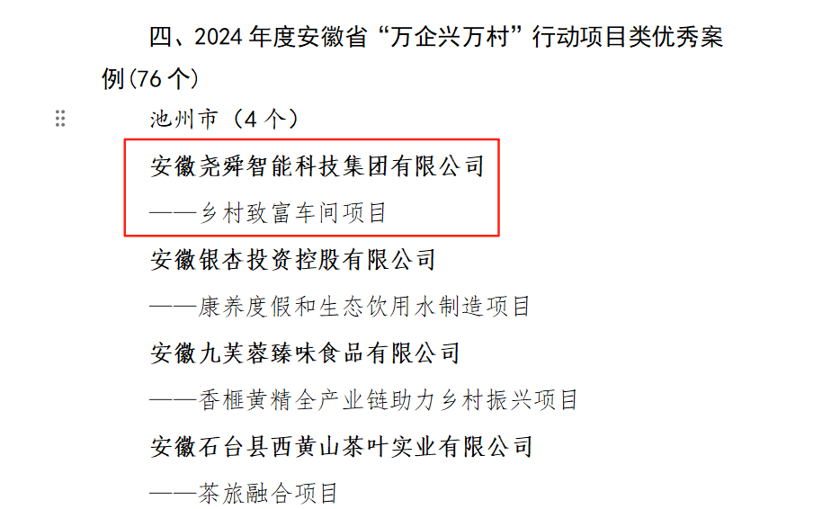 安徽尊龙时凯智能科技集团凭借其创新实践的“乡村致富车间项目”成功入选!!安徽省“万企兴万村”行动2024年度优秀案例,,,,这是对集团积极响应国家乡村振兴战略,,,探索民营企业助力乡村产业振兴、、、就业富民新路径的权威认可。。